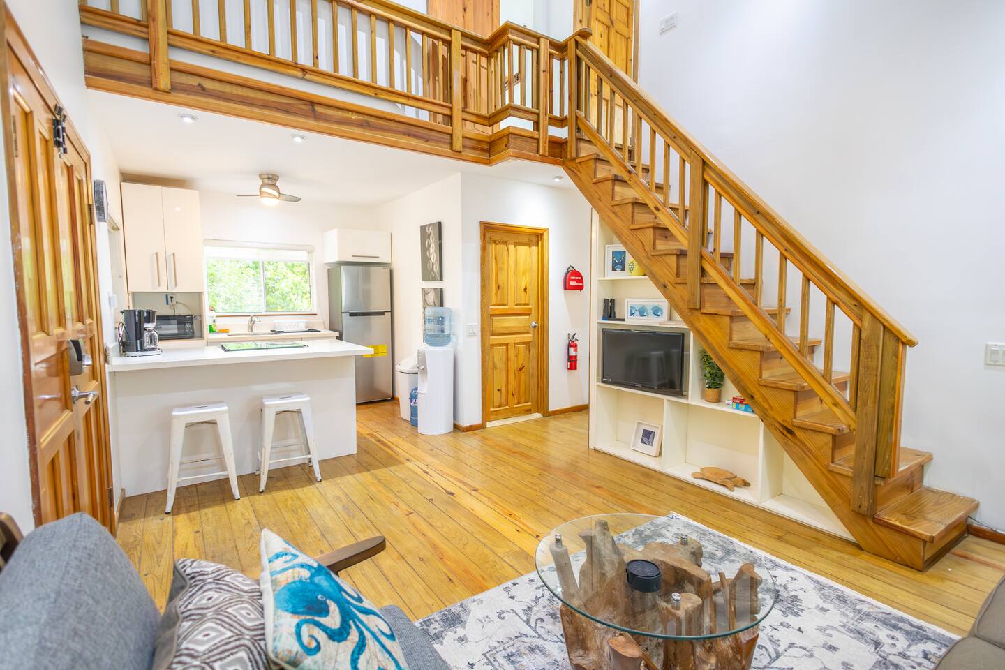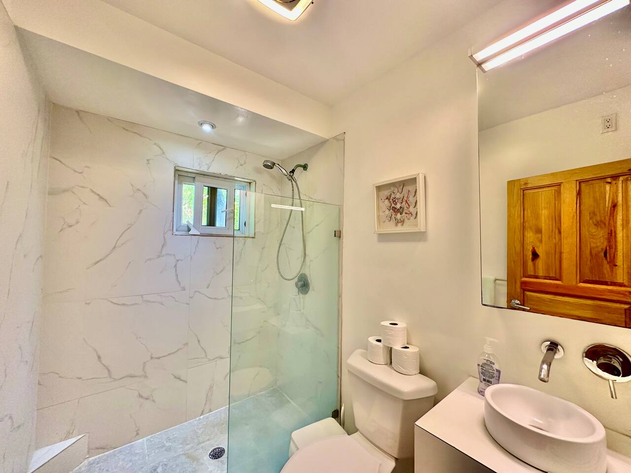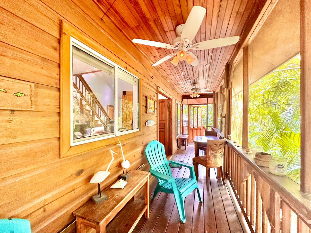Your Tropical Haven Awaits! Immerse yourself in our pristine two-story condo amidst lush tropical forest. With four sunlit bedrooms, two sparkling bathrooms, and a breezy screened porch, relaxation is just the beginning. A one-minute stroll to the beach and a communal swimming pool, where endless days of sun-kissed bliss await. Swim, snorkel, or dive off our private dock. Enjoy free access to the Mayan Princess Resort in West Bay.