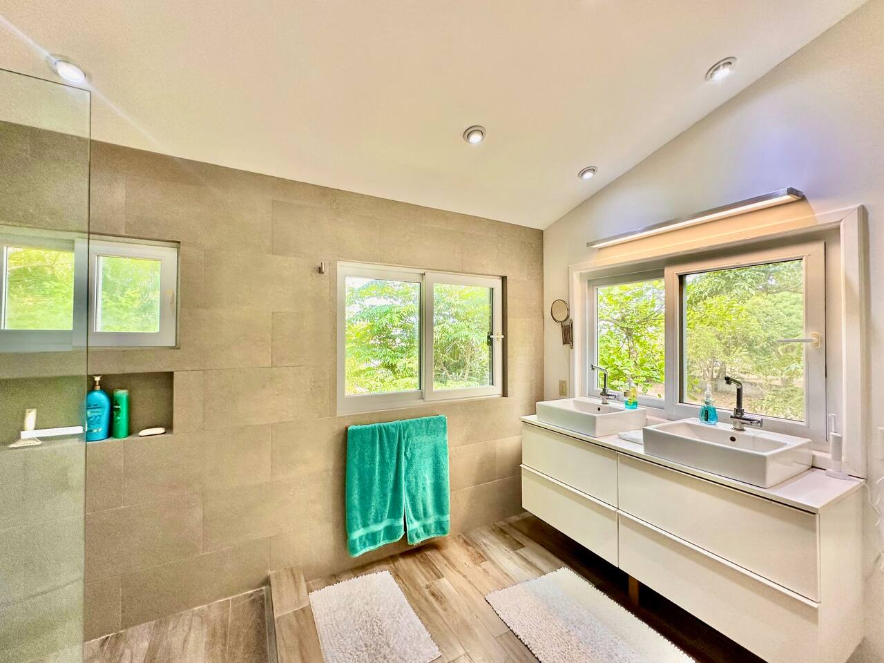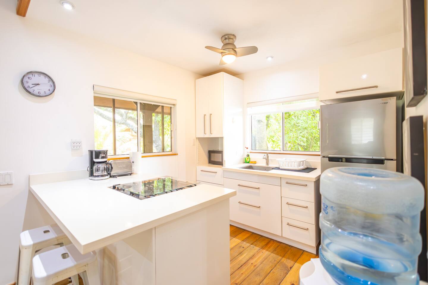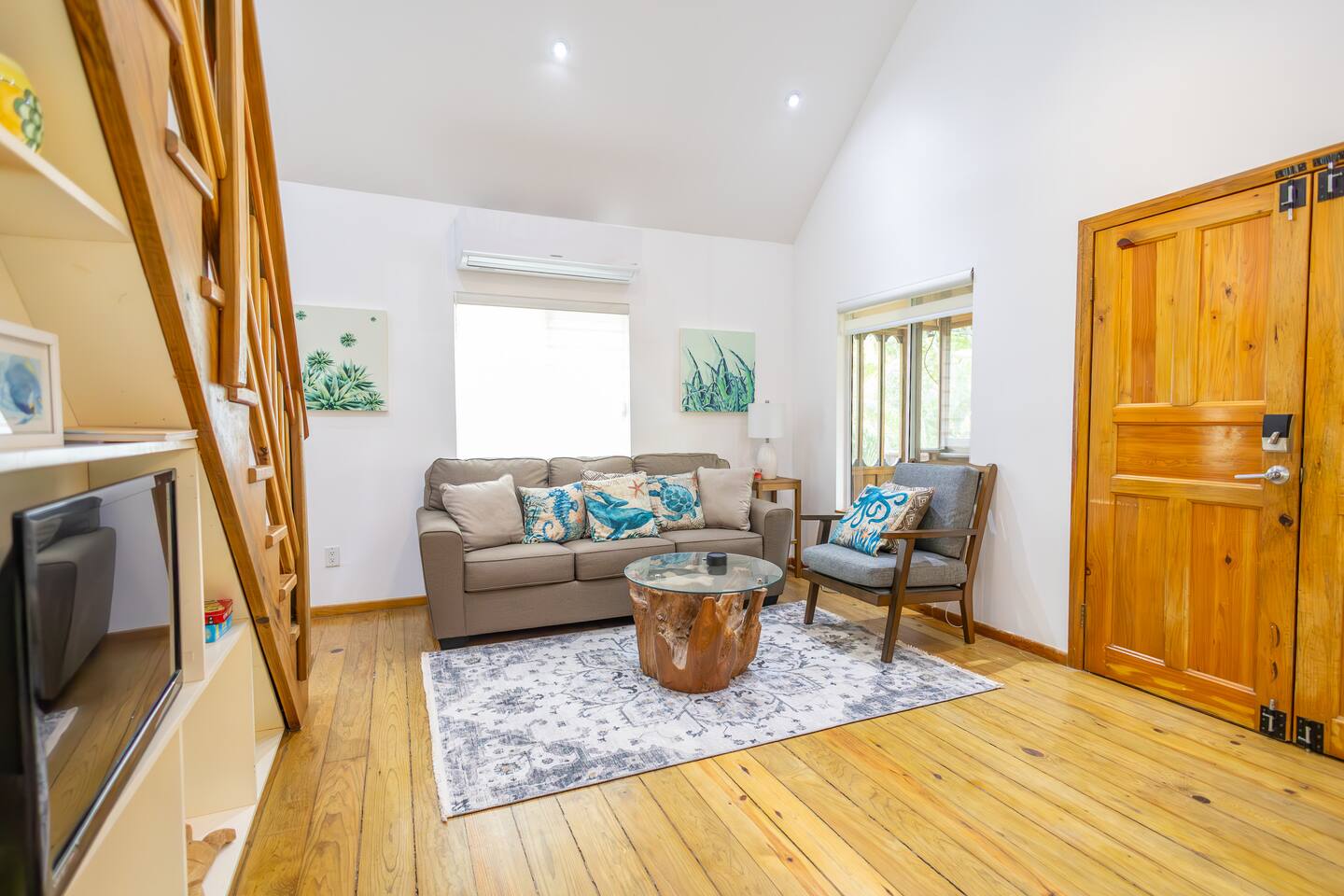 Your Tropical Haven Awaits! Immerse yourself in our pristine two-story condo amidst lush tropical forest. With four sunlit bedrooms, two sparkling bathrooms, and a breezy screened porch, relaxation is just the beginning. A one-minute stroll to the beach and a communal swimming pool, where endless days of sun-kissed bliss await. Swim, snorkel, or dive off our private dock. Enjoy free access to the Mayan Princess Resort in West Bay.